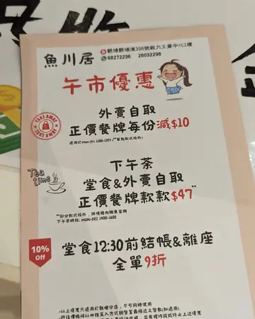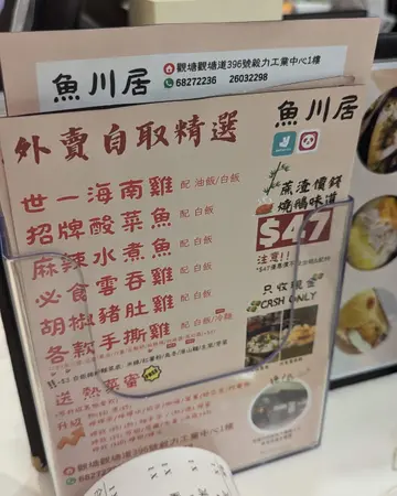 魚川居 (观塘) 网址: https://s.openrice.com/QrLS0sHmC00 地址: 香港觀塘觀塘道396號毅力工業中心1樓 电话: +852 26032298