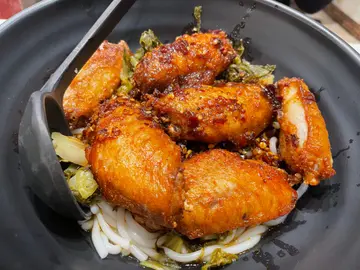 由旧铺食到新铺,换咗新铺之后地方真系大咗好多但系好可惜水准越嚟越下降以前最钟意食嘅炸鸡翼,胡椒汤薯粉鸡翼有六只胀卜卜,胡椒汤超入味但最近去食,虽然鸡翼都仲系有六只只不过已经唔系好似以前咁胀卜卜有少少失望不过以咁嘅价钱,喺观塘午市嚟讲都算系好优惠