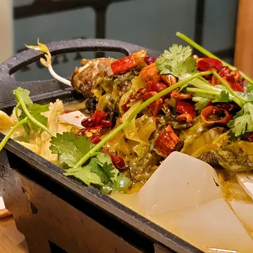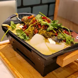 天寒地冻想食烤鱼,就去左呢间米线连锁式集团度食,其实到夜晚食饭时段呢间人流都唔多,不过食落其实都唔错。酸辣珍珠班 $88成个都用咗萝卜、猪红、支竹放喺条珍珠班下面,虽然上碟嘅时候会觉得好丰盛,但系条鱼加热唔到,最尾都系要搞埋一碟。成碟𩠌嘅味道其实唔错,辣度同酸度都适中,因为有明火喺个炉下面加热,所以食极都系暖笠笠,而且啲配菜好入味,配饭食简直一流。萝卜牛腩米线 $41牛腩米线都唔错,牛腩大大嚿,而且煮得好淋好入味,嘅鱼汤都唔错,味道够鲜甜,萝卜索晒啲鱼汤,咬落口鲜甜美味。