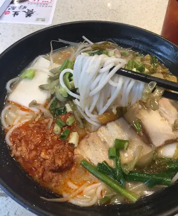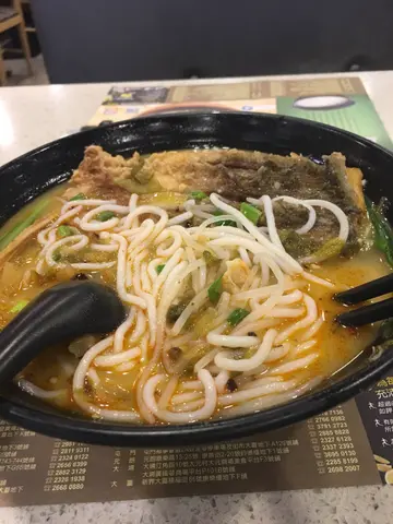 刚刚和女友在黄浦戏院睇完新 MIB,真是好麻麻. 感觉为做而做咁.促使我地去好揾野食既决心.行过呢间野门口时, 有阵好强烈既鱼味, 即刻吸引左我地入去.由于还是下午茶时段, 见到个下午茶时段餐排都有十分多选择,但热爱汤水的我都是选择汤面.选左T7 酸辣鱼片腩肉炸酱米线.本身想试试佢地的鱼汤底, 但已比佢地的炸酱酸辣味淹盖了.没有了鲜味, 但保留了鱼汤的甜味加辣, 好好饮. 成碗饮哂.鱼片没有腥味, 但一般鱼片比较腍, 没有阵性咬口.腩肉反而有惊喜. 好似日本餐厅牛肉厚切咁. 好有质量.加上两款肉类都索哂辣汁既精华, 基于太惹味既关系, 不太食得辣的我好不客易才能够完成.好在每当感到辣的时候, 有呢杯冻柠檬茶止止辣.只是加$3. 顶一顶.