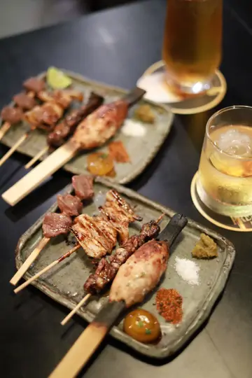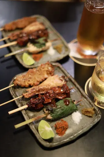我今日去左铜锣湾,去到一间朋友赞过嘅楼上鸡串烧餐厅,果然冇介绍错!我同朋友各自叫咗鸟森串烧五本同精选串烧六本。串烧就share食,所以试到好多唔同口味。每份餐都有附送鸡出汁、茶碗蒸、渍物、沙律、御饭同热饮,而我同朋友就拣咗咖啡。渍物酸酸地,开胃又爽口。蕃茄沙律上面有蒜蓉,辣辣地好惹味。茶碗蒸嘅蛋好滑,入面仲又有鸡肉。御饭有蛋黄同紫菜,风味独特,捞埋食份外滋味。咖啡有炭烧味,调味用嘅奶滑得嚟唔会腻。鸡出汁闻到好浓沃嘅鸡香。串烧方面,茄子多汁,上面有明太子调味。牛横隔肌好软熟,但又有咬口,口感平衡得好好。免治鸡肉棒,好好肉地,外面烧到焦香但唔油腻。紫苏里芋豚肉卷,上面搽咗甜甜酸酸嘅梅酱,一层豚肉喺外面包住好脆口。黑豚猪腩串,油脂丰富,外层烧到有啲酥皮嘅质感。鸡胸软骨,平时好少见烧软骨,保留到香脆但冇炸鸡软骨咁邪恶。冬菇好juicy。鸡腿肉同鸡翼,啖啖肉,连埋鸡皮烧更加香口。整体黎讲,呢间餐厅食物质素好高,串烧亦都几有特色,绝对系铜锣湾闹市嘅hidden gem。…查看更多