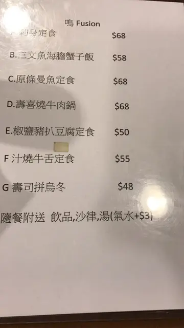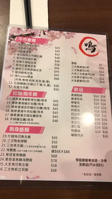 和男朋友提早庆祝圣诞,我们去了尖沙咀亚士厘道的鸣Fusion食日式放题。上次去过觉得味道不错,款式又多,今晚再来一次。我们订了晚上七点,任饮任食两小时。坐下侍应递上餐牌,选择食物,写下食物号码和数量,然后入单。最值得一赞是落了几次单都没有漏单。先叫前菜,要了芝麻菠菜,蟹子沙律和中华沙律。芝麻菠菜毫不油腻,加上日式芝麻酱,令本来平平无奇的菠菜更添美味。日式放题当然少不了寿司和刺身,每款都叫了些,这里有花之恋寿司,肥美三文鱼厚切大大片,好好味。这里也有供应赤贝寿司,通常任饮任食都不会有赤贝这类高价货,赤贝虽不是很大片,但吃下去也很滋味。串烧类我最喜爱甜蕃薯,男友则说烧虾最好味。蕃薯个子小小,一口一个。烧过后有蜜汁流出,甜甜的很惹味。另外又叫了柠檬鸡翼和炸紫薯波波。最喜爱这里可以单点数量,可以只叫一件。因为男朋友不喜爱炸物,所以我可以只点一件,太好了。柠檬鸡翼和炸紫薯波波上枱时热辣辣,鸡翼烧得蜜甜香脆,而紫薯波波则烟韧可口。男友觉得不够,又点了饺子汤乌冬,吃完就觉得非常满足。今晚我俩吃得捧著肚子离开,其实很多款都想再番叫,无奈肚子容量有限实在吃不下。下次再过来吃吧。…查看更多