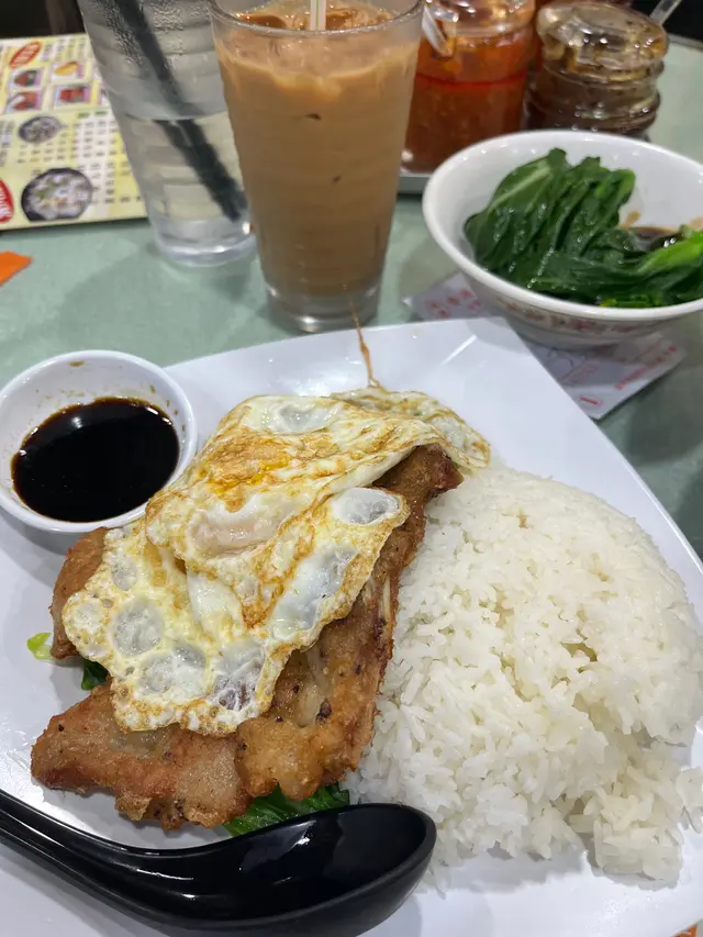 用餐時間 (9:39pm late dinner)follow@wojengyea/@wo!正嘢 for more food info🐒 支持我哋發掘更多美食 😋接朋友放工一齊去食碗粉麵。叫咗碗原汁牛腩河$48 牛腩肥肥地,好腍超好食,肥膏邊好香油脂味,不過唔夠膽食啲肥膏,驚變滔滔。配返碟菜心$13少蠔油,感覺良好啲。略嫌油菜,份量細份咗啲。見佢有支裝汽水,不過我自己買咗廢水,所以冇叫。朋友叫咗碟豬扒煎蛋飯$48,雖然話係快餐,不過一啲都唔馬虎,篤穿隻荷包蛋,蛋汁流哂出來,配合埋甜豉油,超好食。嚿豬扒大大嚿,醃得好入味,而且面頭煎得金黃,鎖住肉汁,絕對係當之無愧嘅Comfort good。凍奶茶搞唔掂,好澀同埋好難飲。…查看更多