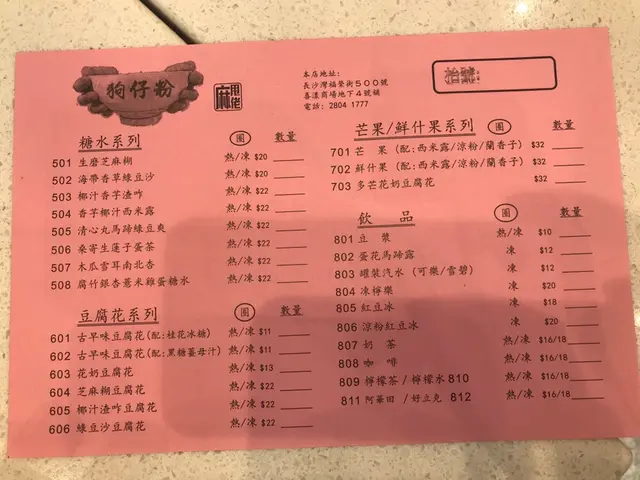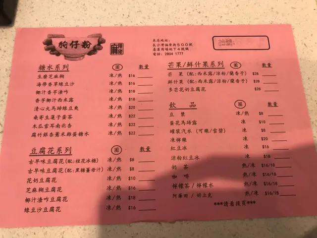 店鋪位於長沙環較僻靜的街道上,附近人流不算多。店內裝修整潔企理也衛生,沒有用隔板,但枱與枱之間隔得較遠,相對衛生問題不大。服務是挺好的,點餐後很快就送到來。狗仔粉是必吃,口感軟綿綿,但沒有什麼味道。奶白色的麵湯是挺濃的,裏面有菇片和蝦皮,十分之香口。豬油炸得脆一點更好。豆腐花不是挺出名的嗎?但就有點失望,沒什麼豆味,和其他豆品名店比也略嫌不夠滑。但灑在表面的薑母黑糖就十分之香,薑味濃郁,甜度適中。此小食店食物品種是挺多的,下次有機會經過會試一試碗仔翅。查看更多