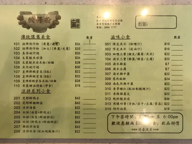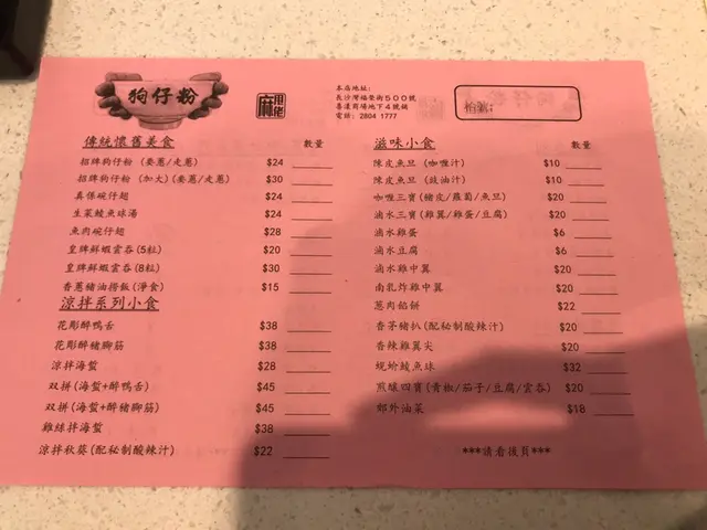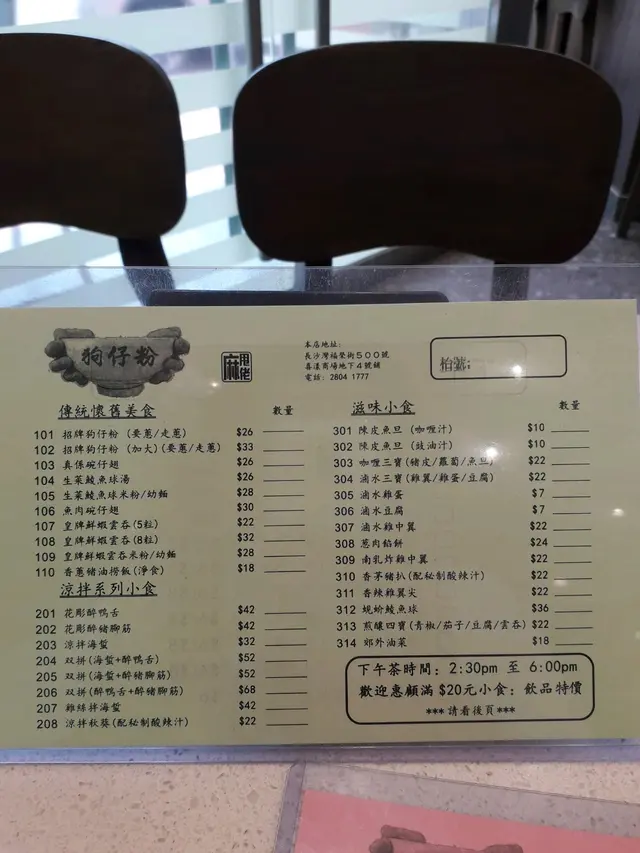 其實經過呢間舖頭多次都唔敢入去,因為個店名夠哂麻甩,好似好伏咁。但今日放lunch突然好想食狗仔粉,於是就俾次機會佢啦。餐廳樓面唔大,落單用紙仔形式。菜單選擇方面,除左有狗仔粉,仲有涼拌,滷味,小食,糖水同豆腐花,都幾多元化。我叫左一碗細既狗仔粉,但其實份量對女仔黎講都幾多。下午茶時段只係$24, 抵食!狗仔粉望落好普通咁,有幾粒豬油渣,幾片冬菇片同埋蔥作配料。重點係個湯底,湯底好重蝦味,見到細細隻蝦米、蝦皮,非常鮮甜。狗仔粉就不會過淋身,有咬口。每張檯上都會有調味架,包括菜脯(有辣有唔辣)、麻油、胡椒粉。食既時候每樣落少少,令成碗狗仔粉更惹味。另外仲叫左件滷水豆腐,豆腐有半隻手掌咁大,滷水入味,帶少少甜味,唔錯。總括黎講,係無咩期望下,呢間狗仔粉都算係性價比高,窮L恩物,我會再回頭。查看更多
