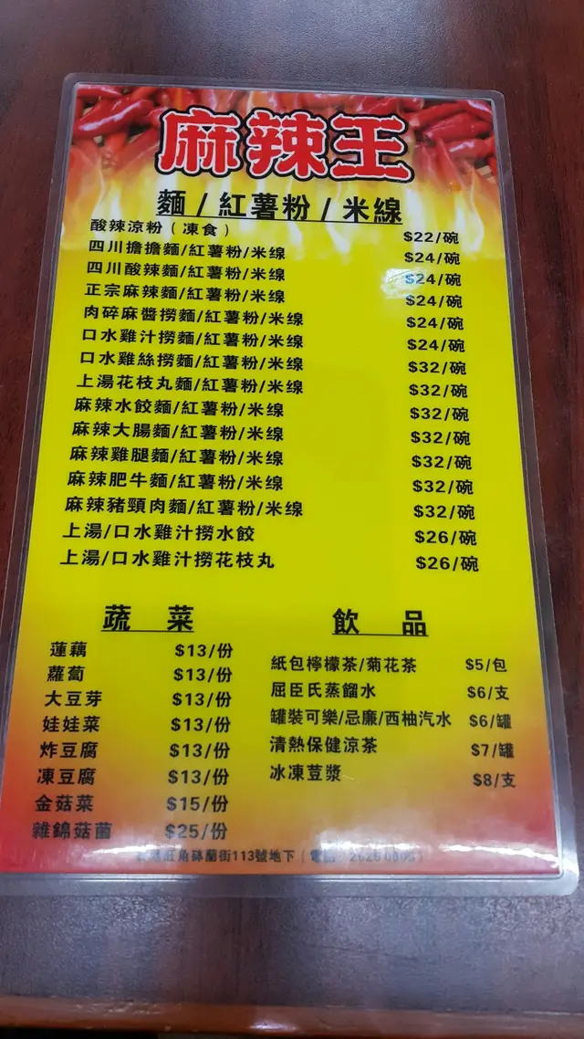 麻辣王 (旺角) 网址: https://s.openrice.com/QrLS06Rm000 地址: 香港旺角砵蘭街109-113號地下B舖 电话: +852 2626 0005