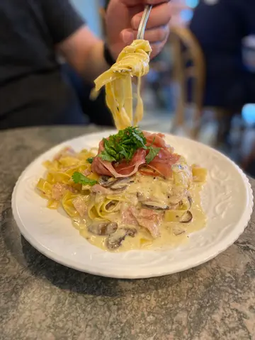 <巴马火腿芝士蛋汁阔面>面头Parma ham份量唔少 下面仲有好多烟肉蘑菇😚其实相比芝士蛋汁 个人觉得似忌廉汁多啲🤣不过挂上阔面就都系一啖接一啖啦😆另外加$30要汤 包 同咖啡☕️南瓜汤新鲜香甜 入面食到一丝丝南瓜🎃面包有自家制法包同百吉包🥖咖啡香浓不带酸 系我钟意嘅味✌🏿<生酮海鲜早餐🍤>亦都系keto friendly嘅cafe✨(但系有少少意外俾错咗面包同南瓜🤣)海鲜顾名思义就系有虾同三文鱼 虽然系白烚虾但都新鲜弹牙‼️😳仲有两只脆边太阳蛋🍳半个牛油果🥑沙律🥗烟肉🥓焗豆 好丰富😍<#Tiramisu >最后加咗个自家制甜品😚mascarpone cream偏稠 食落口感觉似雪糕 但都好滑👍🏿亦都食到可可香🥰手指饼浸过咖啡☕️酒味就唔太觉🙈私心希望加强咖啡同酒味🥺…查看更多