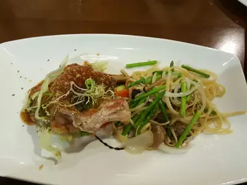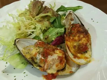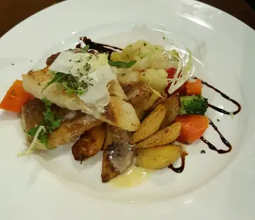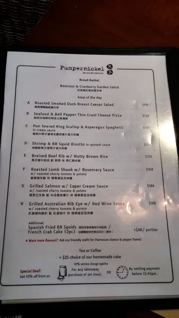 因为突然很想吃面包所以找了一家有自制面包的餐厅。 2个女生去,19:30左右到的 那时不用排队。一坐下先每人来一杯水。不知是否巧合,我们刚跟一个Waiter点完餐 另一个就马上递面包上来。面包有热过的。我们问面包可以点喜欢的吗? (本来想自己再买的) Waiter回答:"你们喜欢那种?我再拿几块给你"。原来刚上那份面包不用钱还可以添加喔~之后来了餐汤,应该没得选 因为都没有问我们要喝什么汤。再来就沙拉跟前菜(焗蚝)。2种 2人份放一起。之后就主菜 这是鱼,不知道什么鱼 只写了 美国鱼柳。这鱼……很淡!淡到连鱼味都没有~我们就问他们有什么酱汁吗? Waiter就问"请问要拿来配什么吃的?" 我们就说鱼很淡,他就拿了给我们一小碟酱汁,估计是蒜蓉汁(正确是什么不知道~也没再问)这是 猪排加炒意大利面,因为是炒的 所以还是有点油啦~但其实份量还挺大的~之后上了餐饮,还有餐后甜品。甜品没得选 就餐厅指定的。…查看更多