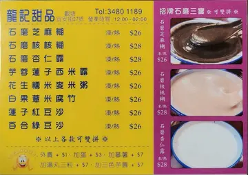 龙记甜品的石磨芝麻糊石磨芝麻糊很好吃。首先从健康出发, 这款甜品有助黑发, 基本上浓浓黑发是人见人爱的, 如此养生甜品已经很加分。石磨芝麻糊就是一道传统的广东甜品,不但健康有营养, 而且芝麻味十分香浓, 喝起来稠度刚刚好, 而同时又很滑顺,营养满满, 十分丰富, 吃得出用料很足, 芝麻味超浓郁, 一口也是芝麻香, 而不是腥味酸味。虽然用石磨过度制作会加倍繁复, 但效果真的很好, 也很佩服店家的用心。在家中基本上不太可能做到石磨的效果, 所以更加要身体力行去支持这种用心经营的好店。的确特别好味, 我很享受其独特而不可替代的风味。…查看更多