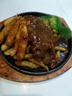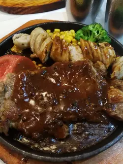 去開觀塘,係APM揾食有啲難,因為啲野越黎越貴, 上OPENRICE睇, 見到間抵食經濟嘅, 又越apm唔遠, 就行過去試下。見到有幾枱都叫左鐵版餐,賣相都唔錯, 所以就叫左個牛扒拼炸蝦試下, 一上枱就好有兒時感覺, 滿滿嘅黑椒汁, 香噴噴。 意粉係底下吸哂啲汁, 炸蝦脆口, 而牛扒都唔係薄薄一片。 整個鐵版份量都幾滿足。朋友就叫左個牛油帶子意粉, 估唔到佢帶子數量咁多,有成6,7粒,加埋啲菇, 成個意粉一啲都唔孤寒。最後加多個蜜糖雞翼, 蜜糖味唔太重, 只係薄薄一層,但個雞翼就好滑,一啲都唔dry. 賣單兩舊水唔使,都算幾抵食。查看更多