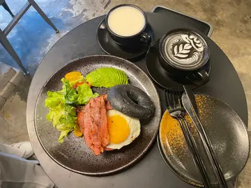 (但可惜好似执咗🥺)2045 Coffee💚All Day Bagel全日贝果 $138Black Sesame Latte $50Oat Milk $28人均消费: $108 (2人)-All Day Bagel全日贝果🥯佢系类似用bagel整做一个三文治🥪配料有烟肉 蛋 avocado 菜🥬用芝麻整嘅bagel 蕃茄仔比较淋身啲 偏甜嘅🍅啲菜都几新鲜 好似落咗橄榄油啲frd🥬只蛋都几好味🥚入边仲有薯饼🥔薯饼入边有啲似炸油糍一丝丝嘅薯仔丝 食落去 口感唔错🤤同埋 佢自己都好似落咗啲调味 好好味🧂啲菇比较多汁 都唔会煮得好干🍄都大粒 都偏向软淋淋牛油果偏向淋身啲🥑但又唔会好淋到好蓉𠮶只 都有返啲口感.Black Sesame Latte☕️个黑芝麻latte好特别😝好香浓黑芝麻味 再加咖啡嘅味道☕️去到个底 会饮多啲浆住浆住嘅黑芝麻 系真系feel到啲芝麻即磨出嚟嘅👻好靓 打卡able📸.Oat Milk🥛佢做俾我 因为好似夜晚先有🤭佢比坊间嘅燕麦奶 冇咁甜佢都冇咁多糖 好好味🤤同埋好舒服 饮落去暖笠笠🥰·以上评价 同🦔一齐写所以带返头盔先👷🏽 -23/5/2023 ate成个格调环境好靓😍以黑色为主🖤🤍有啲音乐🎵感觉好靓 好chill-有兴趣嘅朋友仔 可以试吓👇🏽2045 Coffee (大角咀)💚大角咀海景街34-46号富贵大厦西座地舖· 好味程度:🌕🌕🌕🌗🌑抵食程度:🌕🌕🌗🌑🌑环境靓靓:🌕🌕🌕🌕🌑服务态度:🌕🌕🌕🌗🌑会回头率:🌕🌕🌕🌑🌑·#od大角咀觅食之旅 #od食cafe嘢·希望大家身体健康 开心快乐💛 …查看更多