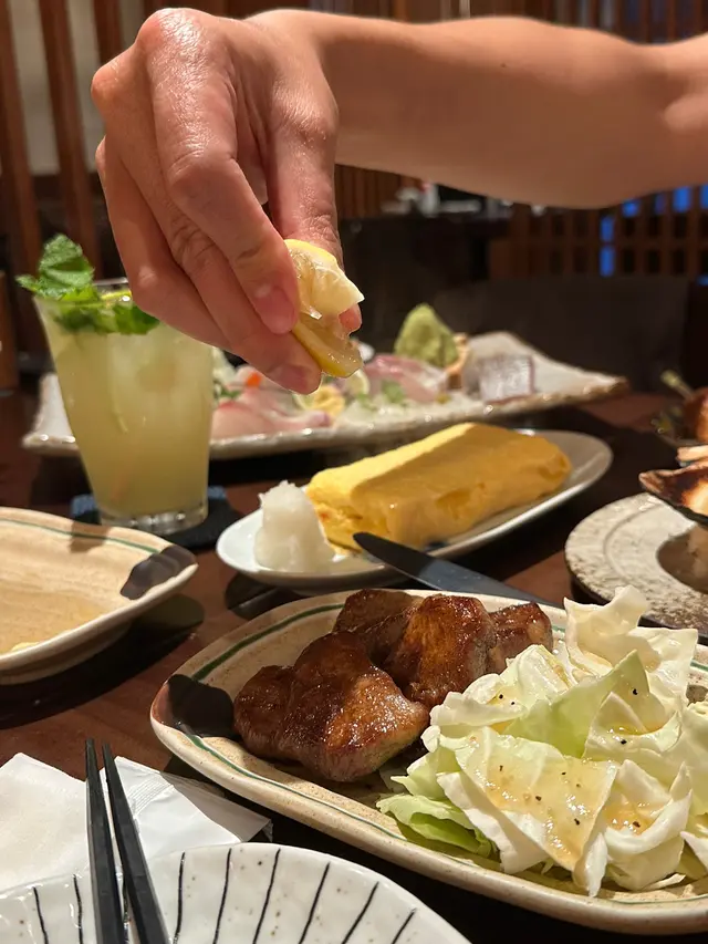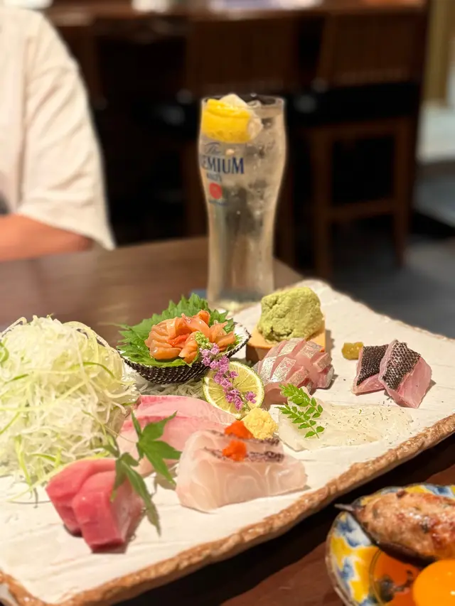 星期日夜晚都好多人嘅居酒屋,位於銅鑼灣站D2出口2分鐘路程。晚市而家做緊優惠,啤酒買一送一、某啲酒類都有50% Off。食物種類選擇都好多,而且環境好舒服,座位分隔有私隱。刺身拼盤七點盛 $380刺身非常厚切,而且幾乎全部都係時令海鮮,分別有池魚、間白、伊佐木、拖羅、赤貝、真雕同赤身。特別嘅位係佢特定嘅刺身配有少少調味,令到口感更加有層次。超濃厚雞湯烏冬 $98食好多串燒同比較乾嘅食物,都想嚟返一個有湯嘅餐點。烏冬叫咗超濃厚雞湯,果然好似佢個名咁雞味好濃,而且烏冬質感亦都好好。燒銀鱈魚乾片 $68作為餐前開胃小食,呢一份魚片煎得好香。明太子煎蛋卷 $88之前見到好多人介紹佢哋呢一個明太子煎蛋卷,果然好有驚喜。因為係新鮮滾熱辣即刻整出嚟,所以出到嚟仲噴緊煙,而且蛋味好濃,冇加特別調味,更加食得出明太子嘅香。三文魚三文魚子燒飯團 $78三文魚子配三文魚肉呢一個配搭,令到成個飯團三文魚味好濃,配埋燒飯團嘅飯焦,非常惹味。串燒:雞肝 $36 自家製免治雞肉串 $36 豚肉金菇卷 $36雞胸軟骨 $36 鹽燒牛舌 $78牛舌係厚切,隔離有好爽口嘅椰菜,口感好爽口,不過個人比較鍾意配鹽粒,如果佢哋有埋就完美🥳。燒羊扒 $88燒羊架相比上面幾道菜,就比較平淡,不過肉質都幾軟腍,而且加埋檸檬汁同佢提供嘅醬汁都幾惹味。High Ball $75沖繩香檸Mojito $68想讚一讚佢呢一杯調酒好清爽,可以一試。…查看更多