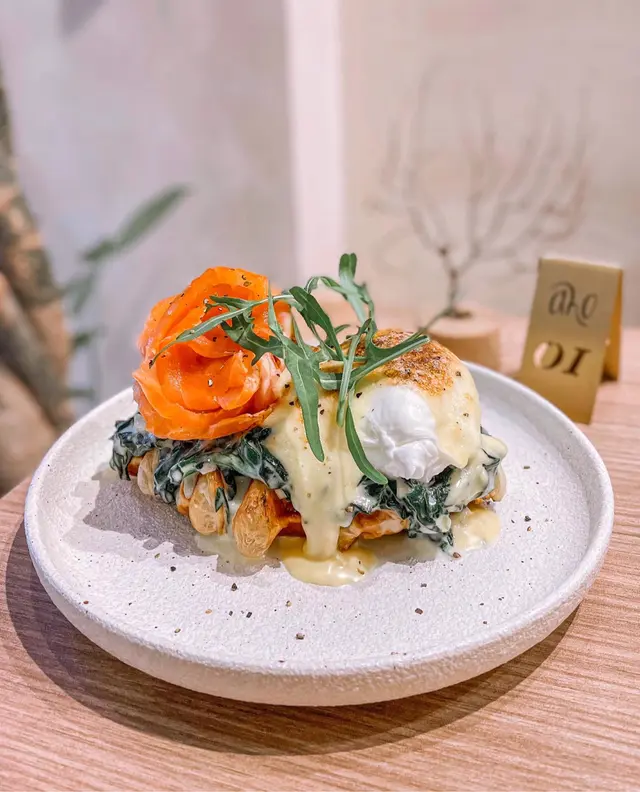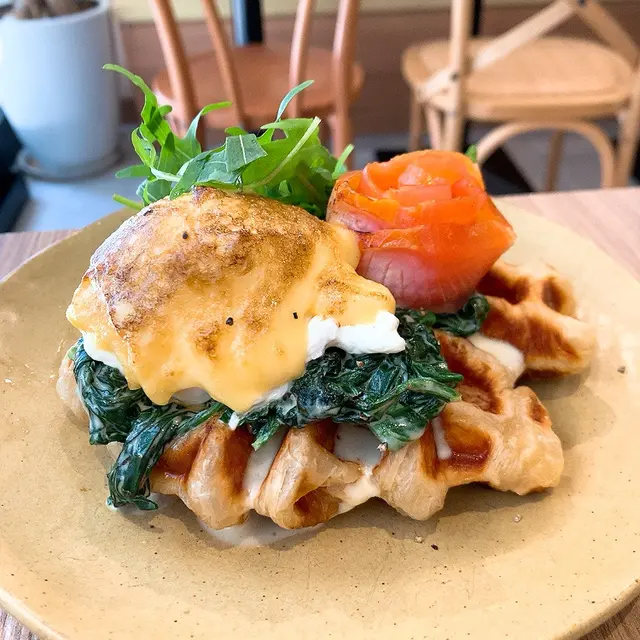 煙三文忌廉菠菜班尼迪蛋牛角窩夫