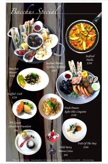 今晚朋友生日一行3人入到西贡BACCHUS庆祝生日,一路也很喜欢这间餐厅时常带给我惊喜的晚餐。头盆叫了一打生蚝和一只鲍鱼,因为只有一个人吃鲍鱼..每一次都叫生蚝,永无失望。非常新鲜鲜甜!沾小小LEMON已经足够,鲍鱼很大只和弹牙,足够2个人share食,其实已经不用任何酱用小小LEMON已经好鲜味.叫一个salad,特别的大鱿鱼salad。个酱配上salad好惹味.八爪鱼唔会un到咬唔到,反而口感好好,愈食愈上引的一味.汤的时间又到,今次试蟹肉冬瓜粒浓汤!一人一碟汤而每一碟汤足足有一只蟹肉的份量,上台时冬瓜粒放底上面舖满新鲜蟹肉.waiter用一个bowl加入热汤..系你面前倒入汤好香,一只蟹的汤不用5分钟已经俾我K.O.左!我是鱼爱好煮,一定要食鱼!因为我系乜鱼都食就交俾大厨决定 上台了,有芦荀在底上面配一大件鱼,加上自家的酱汁.好滑的鱼柳唔会腥.食完一件又想再食.但留个肚食下其他野!另一款主菜,steak!5成熟!上台香喷喷配芦荀和薯蓉.好大的一件steak!3个人share完全足够.切开好juicy肉汁和中间5成熟,有些微血水,好香.流向薯蓉变成火山薯蓉:)个薯蓉系配角但都好滑好香所以都已经K.O.埋..黎依到..系一定要叫pasta的!因为真系好好食!由于已经开始饱,所以只叫了一个带子香草意粉.个名好似好普通,但你只要试过依到的pasta就知道唔简单!意粉质感唔会淋bebe,有咬口又香.必食!甜品时间! 焦糖鸡蛋布甸!冻食的也是必食的!不会过份甜超香鸡蛋味!!一个人食2个也可以..因为一早说了朋友生日,做了一个心太软做birthday cake,大厨也很细心加上名字3个人食了不小野,很满足很开心.店主很亲切,每一次来食材也很新鲜,食饱和朋友一路倾计环境很舒服.查看更多