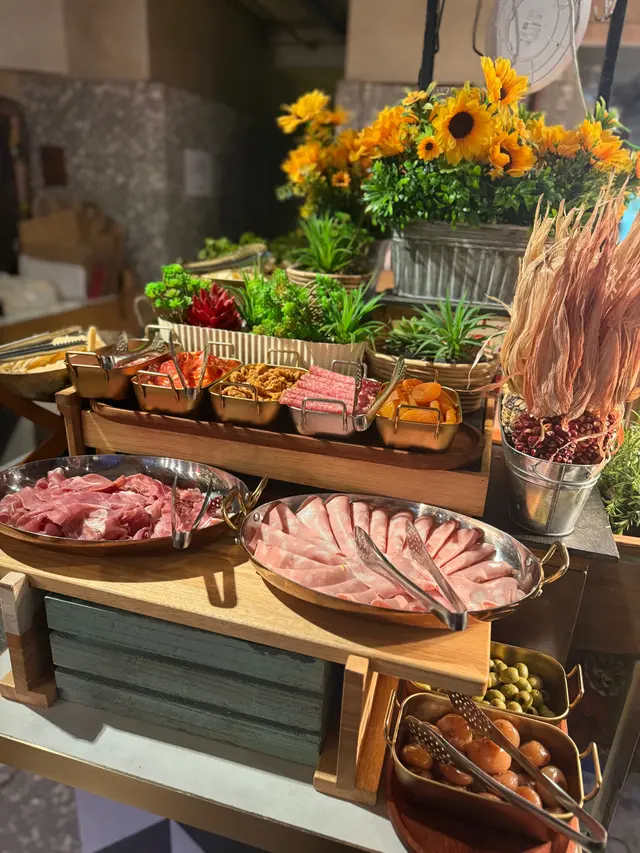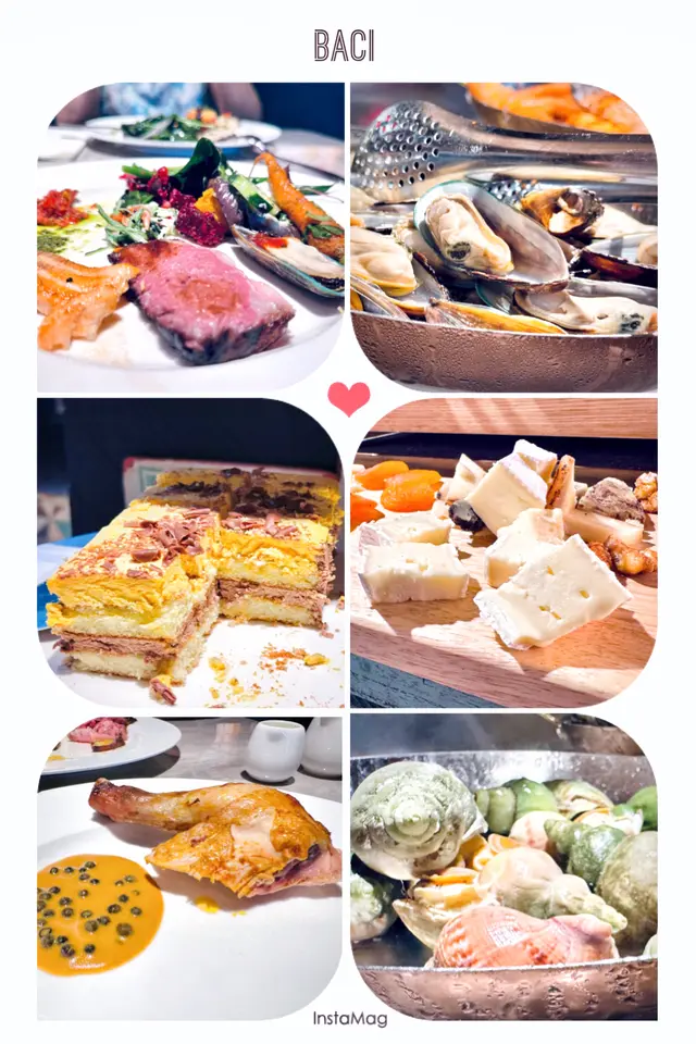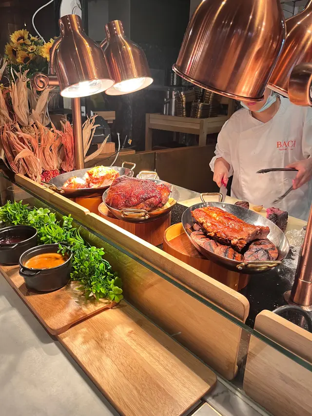 今次係星期六過嚟BACI食weekend brunch, 仲要book 到7折食,即係四百幾蚊就可以任食Pizza、海鮮、甜品、開胃菜、切肉、意粉!燈光溫暖、環境雅致,自助區絕對唔輸酒店,而且好多都係外國食客,勁有氣氛,好似去咗意大利咁🇮🇹Seafood & Salad Station海鮮沙律櫃枱🦞有龍蝦、剝好嘅龍蝦鉗、青口、大蝦、多種刺身沙律,質素都OKSelection of Premium Italian Cold Cuts & Cheese精選特級意式凍肉及芝士拼盤🧀鍾意食芝士嘅唔可以錯過水牛芝士勁好食呀!Assorted Desserts & Fruit Platter甜品及水果拼盤🍰🍨原個大蛋糕睇到心心眼!啲蛋糕全部大件又好食🤩私心特濃朱古力、芝士蛋糕,仲有牛乳布丁,滑到不得了🤤仲有兩款雪糕添PASTA LIVE STATION即製意粉🍝Penne | Spaghetti | Cavatelli | Gnocchi長通粉|長麵條|貝殼粉|薯仔丸子CARVING STATION烤肉專區🍖Roasted Pork Rack香烤豬肋骨Beef Rump烤牛臀肉Grilled Cockerel Diavola with Rosemary Roasted Potato意式香辣烤雞配迷迭香薯仔估唔到啲烤肉都好唔錯,豬肋骨勁腍,我都食咗兩舊FRESHLY BAKED PIZZA新鮮烘烤薄餅🍕Chef’s Daily Showcase主廚是日精選Italian sausage, Margherita, Pepperoni, Focaccia cheese, etc.傳統窯爐即叫即焗,薄餅批邊漲卜卜,有似花豹斑點嘅焦痕,中心好濕潤軟綿,好正宗!HOT STATION熱盤專區Meatball Livornese經典意大利肉丸Salmon Limone香檸三文魚Chicken Wings Cacciatora意式獵人燉雞翼Salamella Sausage莎樂美腸Eggplant Parmigiana巴馬臣芝士茄子Sicilian Caponata西西里燉雜菜查看更多