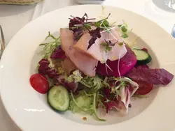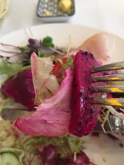 Appetizer拣左个黑毛猪火腿肠拼盘, 份量足够我们四个女仔,始终比较咸, 每人浅尝几片就够啦。Main course 时先系戏玉,两碟都好精致:分别叫左波士顿龙虾蕃茄天使面及牛肝菌意大利饭。食晒嘢之后, 侍应马上递甜品menu 埋黎。得7, 8 款而且大家都觉得该价钱一d都唔值, 于是继续坐晌到倾计。此时就递上一碟好似Chip Ahoy的曲奇饼仔, 应该在示意我们要埋单了吧。 …查看更多