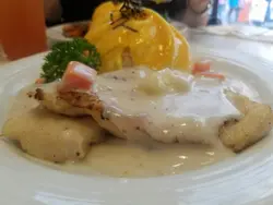 细细个时我已是蛋精1个,仲记得扭计唔食嘢时,嬷嬷就会煎太阳蛋+豉油畀我捞饭…扭纹蛋个样靓.别致,蛋生熟程度亦刚刚好。些少蛋液捞埋响饭里,一羹入口,好满足鱼柳配忌廉汁,不过不失鸡扒似系煎定嘅,略嫌干身些少。我觉得扭纹蛋成功勾起我儿时美好回忆,况且真系扭得靓和美味。下次再试过第2款,可能会有惊喜呢!