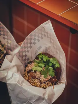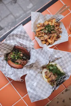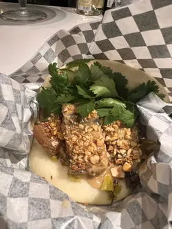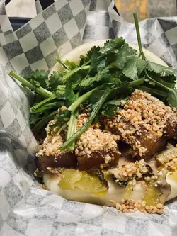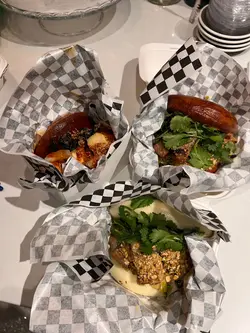 話說今日去咗西營盤一日遊,食完小滿定律同埋睡飽吃吃之後好想食鹹食,見這間店舖配搭創新,賣相又吸引🤩就去試下。店舖位置都算方便,橙色店面十分醒目,店員也十分有禮🥰不過留意番店舖做外賣為主,只有2-3張枱仔,當日去到好好彩還有位置。🌟慢煮豬腩肉配黑醋醬刈包 $58慢煮豬腩肉/自家製黑醋/炒酸菜/花生碎/芫荽/芝麻刈包今次揀咗蒸,個包好軟熟🫶🏻同埋即叫即製關係,食的時候還熱辣辣。入面的餡料就犀利啦,豬腩肉肥瘦比例好好😋食到油香之餘又唔會太肥膩,加上黑醋醬一點也不覺油膩,炒酸菜、花生碎、芫荽、芝麻增添香味之餘,又有咬口😚朋友話呢個好食點😄🌟香脆炸雞配青醬刈包 $58脆炸雞/自家製羅勒醬/自家醃製青瓜/糖心蛋/炸羅勒葉/芝麻雖然上一款已經好正😊但呢款我更加喜歡!炸雞啱啱炸起熱辣辣,一拎上手勁重手,相信一個女仔完全夠晒做午餐🤣食落去外脆內軟,雞肉係有肉汁的😍好嫩滑😁自家製羅勒醬味道剛好,唔會太濃味之餘又可提升炸雞嘅層次,兩者好夾!呢個我覺係必試。😝…查看更多