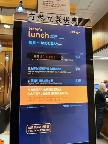 昨天我去了威尔斯医院Cafe330 ,买了一个午餐,一个牛角包,坐下来后,不断听到主任喝骂员工,店舖气氛极差,牛角包硬过石头,午餐个饭冻嘅,同主任讲,佢话我唔系即时食,所以冻左,我话退钱,佢话唔可以。我乜都冇念就走左。请大家不要去这间店舖