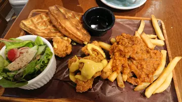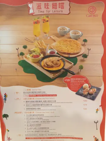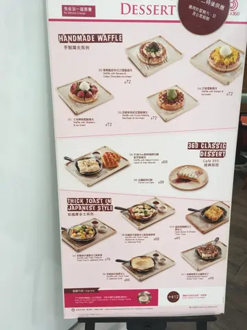 星期六无所事事,和朋友来到Cafe360歇一歇。之前在商场看到广告已经想来试一试,但位置不太起眼,所以常常都忘记了。星期六的下午,人不算多,很快就可以入座了。和朋友叫了两份下午茶一起Share。【休闲下午茶拼盘】芥末蜜糖脆鸡、窝夫、肉酱薯条、田园沙律个人认为整个拼盘最好吃的就是肉酱薯条了,薯条新鲜炸好配上肉酱十分滋味。至于脆鸡和窝夫方面,两样都略为干身,感觉普通。【和风梳乎厘厚多士