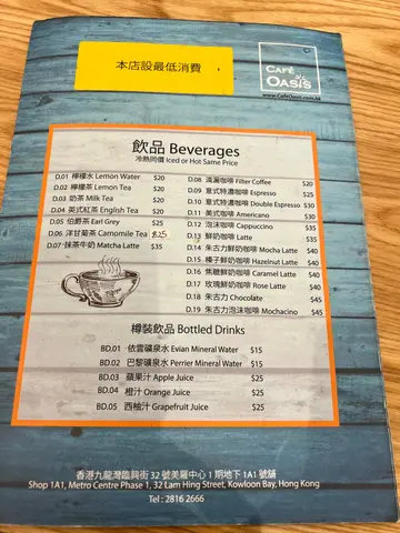 Cafe Oasis (九龙湾) 网址: https://s.openrice.com/QrLS0OYGA00 地址: 香港九龍灣臨興街32號美羅中心地下1A1號舖 电话: +852 28162666