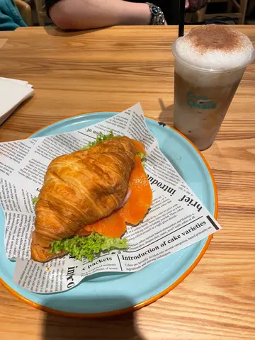 同朋友咁啱过黎九龙湾呢边做野~一望过对面马路就见到间几靓既cafe~睇门口menu几多野食就试下🤔以为cafe冇乜野食又几多选择~有午餐有tea set😳😳叫左个烟三文鱼牛角包😳估唔到个牛角包咁大个~仲要脆既👍🏻👍🏻件三文鱼好大块盖晒成个牛角包👍🏻👍🏻👍🏻Set饮品+$20仲可以转cappuccino~卖相都好靓👍🏻👍🏻👍🏻下次再黎试埋其他野~大推👍🏻👍🏻👍🏻