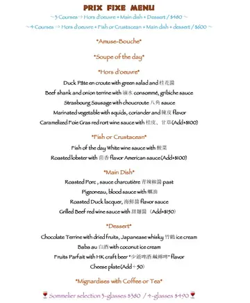 Chef Ecy’s Dining Experience:🥰 Food | Ambience | Price | Restroom Cleanliness | Service | Easy Access | Wheelchair Friendly🙂 Corkage Fee | Easy Parking😠 Pet Friendly | Cake Cutting FeeTucked away in Tsim Sha Tsui, this newly opened French private kitchen offers an intimate and cozy dining experience. Helmed by Japanese chef Nihonyanagi San, the restaurant operates exclusively for dinner with a pre-set menu.We opted for the $480 HKD set dinner, which included a choice of Starter, Main, and Dessert. The chef prepares everything masterfully right before your eyes. Dishes were beautifully garnished and delicious. Standouts included a rich, creamy cold pumpkin soup, incredibly crispy deep-fried beef honeycomb tripe, and an exceptional duck pâté with visible meat. The foie gras, seared from raw to plate at the counter, was a highlight.We also enjoyed the wine pairing ($380-$490 HKD), which featured excellent unfiltered sparkling, white, and red wines matched to the courses. Desserts, like the chocolate terrine with Chinese wine ice cream, were uniquely delightful.The service and ambiance were excellent. The venue is easily accessible from Tsim Sha Tsui MTR station (4-minute walk from Exit B2) and is wheelchair-friendly. Note that premium items like Wagyu beef, Lobster, Foie Gras carry an additional charge, and advance booking (often with a deposit) is essential. Corkage is waived with the purchase of a bottle from their list. Cake cutting fees applied at $150 per cake. It's an outstanding meal well worth the price.…查看更多