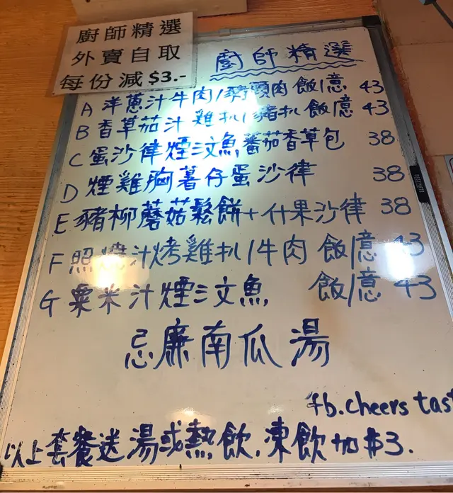 今晚難得約左朋友喺荔枝角打完波,真係又累又肚餓,即刻就去搵地方食晚飯,朋友喺荔枝角做嘢,就梗係要搵佢介紹下有乜抵食,最後佢介紹左長沙灣廣場1樓的Cheers & taste。店舖面積較小,只可坐三抬人,好在今天是weekend ,有位坐吾洗等,但發現原來呢度外賣減$3!今晚我哋每人叫咗一個餐,大家都揀左B餐,一個是泰式酸甜汁豬扒飯,另一個係泰式酸甜汁雞扒意粉,下單後好快就有得食,熱辣辣上菜,好味,份量都好大份添,仲奉送湯。查看更多
