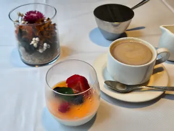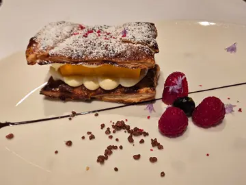 优质实际的餐厅,永远也值得支持,近排就积极光顾以往曾去,但有一段时间被本人遗忘了的好店,这篇是本年六月光顾两次后的感想。近排天气局热,故今期沙律以清爽为主,不同星期去,试了两款不同的沙律,口感味道也有设计,有爽口清甜的梨或无花果及车厘茄,脆口的合桃或松子仁,再加释放咸香部分的芝士或烟鸭胸粒,添点酸甜而杰身的陈醋,吃完就已好好用蔬菜打底,好好准备接着来的菜式。汤类也是有不同变化,今次的蘑菇汤,浓郁美味,铺上两三片干蘑菇片,令入口多了一重质感,配这儿的香脆面包,一绝。此餐厅的lunch set 主菜用料,拌碟薯菜,汁料烹调方法等,绝不马虎。以往我主力吃牛,但近排想多吃白肉或海鲜,发觉此店烹调鱼类汁酱方法多变美味,甚欣赏其茄汁底的做法,茄汁十分鲜美,估不到今次吃到一款白面豉酱,入口香滑甜,有点西京烧效果,而且更清爽,鱼皮就一如以往,焗得香脆,令人回味,再缀以不同grilled 小蔬菜,感觉吃得饱,身体又不太大负担!摆放小蔬菜的效果,也近一些米芝莲一星的水准。不过,我第二次再来,就忍不住点牛扒了,今次是Angus,有肉味及炭火香味,最心心念念的是其千层叠薯,分层应有一些cream在其中,甚为美味。有时,就有薯蓉作伴,其水平有Robuchon 的7, 8成,已算很不错。以往我多不额外加钱,点此处的甜品,因印象很多时也是朱古力心太软,对我来说,吃完三道菜再吃便太漏。但近两次来,甜品又令人喜出望外。第一次是鲜果奶冻,面层放上一片小绿叶作装饰,上枱时,令我感到像见到一个小荷塘般,清爽凉风扑面而来,芒果及热情果酱加见到云尼拿籽的奶冻,再配杂莓同吃,那有不好吃的道理?另一款,昨天吃的就是芒果拿破仑,2层酥皮松脆轻,加厚切芒果肉及吉士,一个长碟上,再加食用花装饰,完全对得起加的价钱。我觉得甜品制作上,进步了,加分!唯一稍稍可改进,是其餐饮,热奶茶曾经是亮点,是港式的浓滑香,我和朋友来时,用餐后,朋友第一句comment,就主动提及西餐奶茶很少达此水准,可见其出色的程度。但之后好像变回basic 西餐淡红茶水平,故现在我多数点热咖啡便算。…查看更多