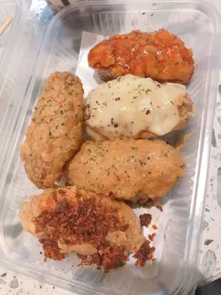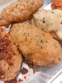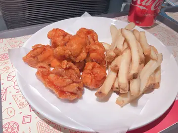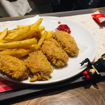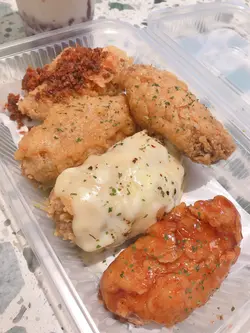 Foodeli间间食店款式唔同,见到呢间快餐店卖特色炸鸡翼,价钱都唔贵,一于试下。▪️鸡翼拼盘套餐 (配薯条连汽水)$52五款鸡翼味道包括:原味、咸蛋黄、玫瑰枫糖、青柠同埋避风塘。鸡翼本身冇咩腌渍过,只靠外面嘅调味。炸鸡翼胜在外皮炸得松脆,冇粉浆口感,又重牛油香味。略嫌有点太过油,食完个碟底劲多油!原味系牛油味,因为鸡翼冇腌嘅关系,变相成件鸡翼都冇咩味。咁多款口味黎讲以咸蛋黄口味最惹味。咸蛋黄酱包住成件鸡翼,带有流沙嘅口感。玫瑰枫糖食落只有糖浆味,玫瑰味欠奉。青柠口味就冇咩特别,唔太食得出有青柠嘅香味。避风塘嘅炸蒜则非常香口,不错👍🏻小食我拣左薯条。薯条系粗薯,岩岩炸起,热辣辣又重薯味,正!▪️辣汁蘑菇饭 $8追加蘑菇饭嘅味道带少许胡椒嘅辛辣,蘑菇份量亦都非常多,酱汁够捞匀成碗饭!比起KFC嘅蘑菇饭呢间质素真系高几班!米饭用咗珍珠米,食落香软烟韧有咬口,仲要热辣辣!📍Chicken 852 九龙湾伟业街33号德福广场二期5楼501B号舖Foodeli S8号舖…查看更多