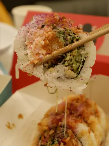 chotto maki经过中环街市,法国有好多嘢食,可惜非常之多人,决定走远少少,去到利源西街,见到chotto maki~~~由于主要食手卷,轻食为主,所以人流都走得快,等位都相对方便💗呢度嘅手卷寿司都好得意,可以俾你自由选择入边放咩配料,我就冇自订配料,我就选咗本身餐单上有嘅卷物,ebi- taiko,同埋double s😆啲名都好特别ebi taiko入边嘅配料系由天妇罗炸虾😍成个配搭非常之好,天妇罗炸虾,非常之新鲜!我外卖唔系即刻食,都食嘅时候仍然系好脆卜卜😍😍另外,double s系有三文鱼,带子粒,仲有少少辣味嘅酱!其实呢间舖头嘅酱料好特别,应该系自己调教,平时喺出边其他寿司舖都好少食到呢种味道😍😍😍佢湾仔仲有分店,得闲真系要去帮衬吓先得,因为可以有好多唔同嘅配搭,每次食都仲好有新鲜感!而且系即叫即整,食材非常新鲜!…查看更多