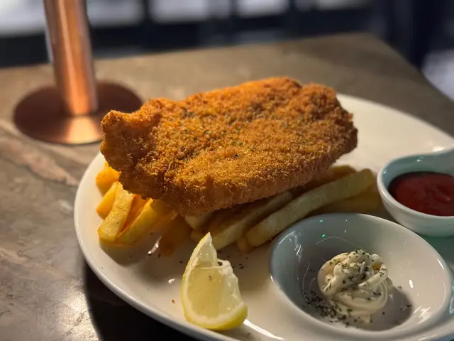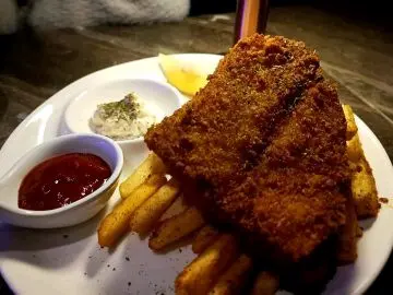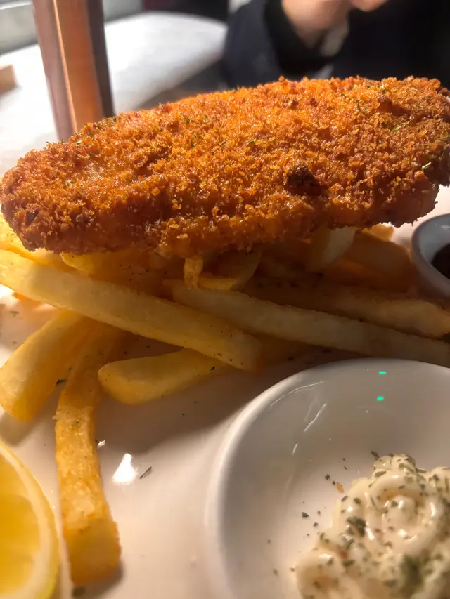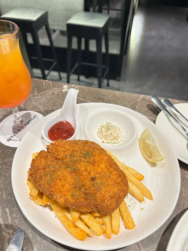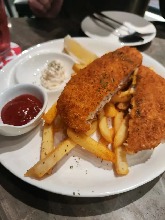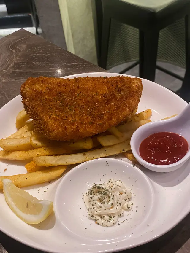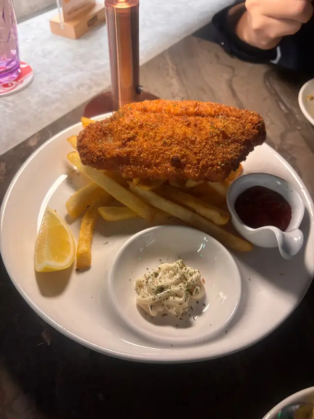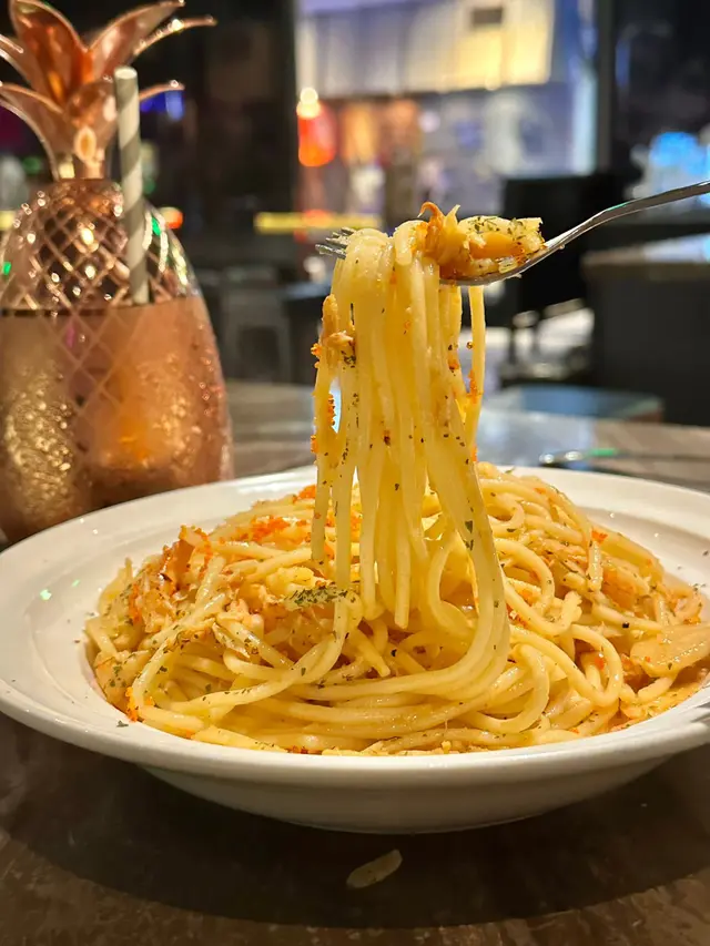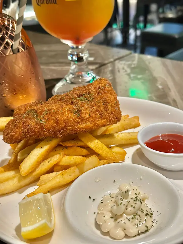 收左工想去happy hour又想食埋晚飯,呢度真係一個值得推介嘅地方,環境時尚,十點後仲要有live music, 好relax👍🟡 Signature cocktailAmnesia🍸-$115.0杯酒好型,由比特酒及威士忌調配巳成的,味濃帶甘,打卡一流👍🟣 MocktailVirgin Mojito🍸-$85.0呢杯無酒精Mojito真係好啱唔飲酒嘅朋友仔, 新鮮嘅檸檬汁加上搗碎的薄荷葉,配上sparkling water, 十分清新可口🔴小食孜然粟米條- $85.0粟米超甜,配上椒鹽及孜然粉既鹹且甘甜,重點炸得唔油膩,抵讚。唔知點解有好多條,食極都有🤣送酒一流,超正🔵主菜-炸魚薯條-$105.0超大塊炸魚,炸魚外脆內軟,唔油膩及香滑,配大量香脆薯條,薯仔味濃,加埋餐廳調製的沙律醬,真係冇得輸,真係食到停唔到口🤩蟹肉燴意粉 -$105.0意粉彈牙有咬口,大量蒜片,蒜香味濃,脆卜卜的蟹子配埋鮮甜好味嘅蟹肉,蟹肉一梳梳的,值得推介…查看更多
