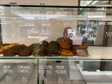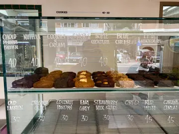 早前经过大坑就食在佢嘅名物呢个流心曲奇🍪店面带种美式的风格🇺🇸简约得来打卡都不错📷 主要买各种美式甜品例如冬甩同曲奇等等🍩 份量比一般大但系价钱同样比较贵💰 感觉主要系网红效应卖相打卡度不错❤️ 但系味道非常一般性价比偏低👎🏻个人认为未必值得再访⭐️ Matcha Macadamia 🍵坦白讲系比到足够嘅浓郁抹茶味💚 但系留心出嚟嘅抹茶酱太过甜欠缺层次🤡好似直接滗啲浆嚟食咁非常漏 最大问题系曲奇偏硬身感觉好干唔新鲜咁🤕 以$50 一块的价钱嚟讲没有比到相应的质素😟