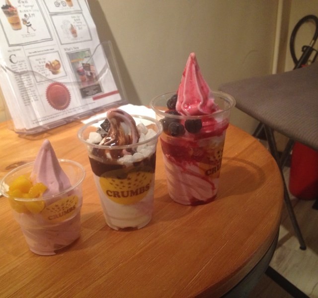 个日同个朋友食完生日饭之后,仲想去食个糖水,谂谂下不如食雪糕,之后就去左crumbs买左两杯雪糕食下。配料选择都真系几多,但系我自己次次食亲乳酪都真系拣生果个D,因为我觉得生果先岩味,睇到花多眼乱之际,朋友就叫我拣蓝莓,平时唔系成日食依D野,原来来甜甜酸酸既乳酪要配埋蓝莓真几好食,仲无咁有罪恶感,因为生果都真系几健康既。我自己就第一次食crumbs既乳酪,感觉都似食紧软雪糕咁,好鬼滑又带D乳酪既酸味;由其是乳酪个种特别既味,其他野系揾唔到既,之前都食过另一间连锁店既乳酪,个间就好似食冰咁,都特别不过唔似雪糕,乳酸味都够,可以讲系各有各好喇。依间既乳酪配埋新鲜既蓝莓,味道真系好正,食少少就令人有幸福既感觉,虽然食太多点都会食肥,但有机会既下次都想试埋其他生果。…查看更多