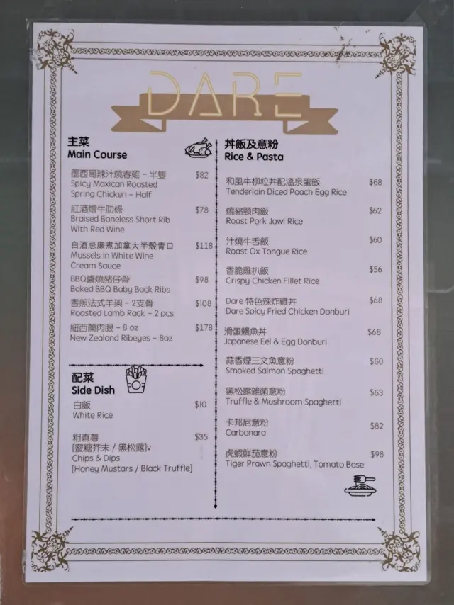 DARE Restaurant (西环) 网址: https://s.openrice.com/QrLS09waD00 地址: 香港西環西營盤水街2-2c號荔安大廈地下F及G號舖 电话: +852 68025903