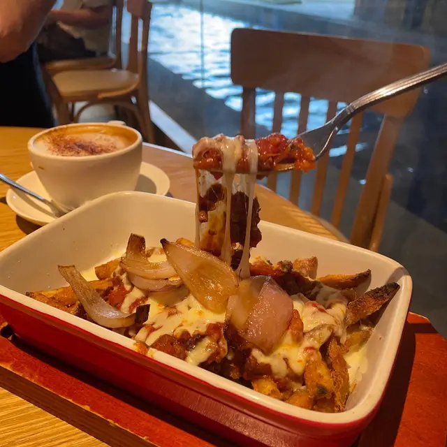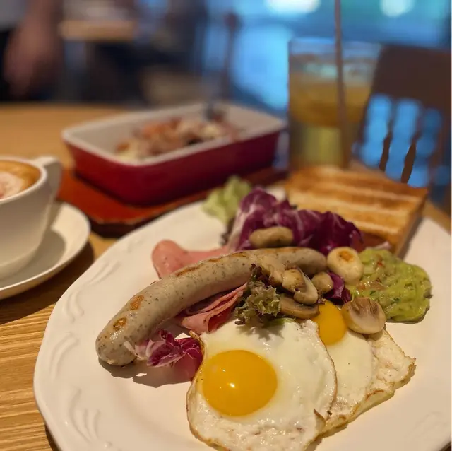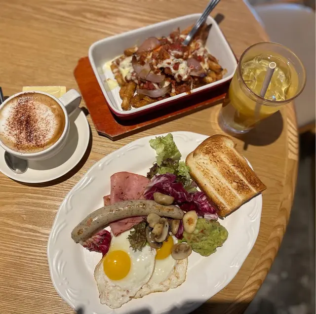 𝒲𝑒𝓈𝓉𝑒𝓇𝓃 𝑅𝑒𝓈𝓉𝒶𝓊𝓇𝒶𝓃𝓉 𝒾𝓃 𝒯𝓈𝒾𝓂 𝒮𝒽𝒶 𝒯𝓈𝓊𝒾放假出左尖沙咀行下,順便影下𝘏𝘒𝘔𝘖𝘈果個勁多人打卡既果舊雲,之後行到文化中心醫肚。呢間餐廳燈光比較暗,都算幾大間,有幾塊落地大玻璃望住出面,個𝘷𝘪𝘦𝘸 幾靚同開揚。餐廳門口有2部自助點餐機同傳統櫃位落𝘰𝘳𝘥𝘦𝘳。🌟大早餐 𝗔𝗹𝗹 𝗗𝗮𝘆 𝗕𝗿𝗲𝗮𝗸𝗳𝗮𝘀𝘁 ($𝟲𝟴)我好鐘意試唔同餐廳既𝘈𝘭𝘭 𝘋𝘢𝘺 𝘉𝘳𝘦𝘢𝘬𝘧𝘢𝘴𝘵,呢道既全日早餐定價比較平,但質素都相對差少少。佢既蛋係煎蛋黎,平時通常係炒蛋?!磨菇好似有𝘋硬同埋冇煎過果種香口既感覺。仲有唔係用煙肉而係比較普通既火腿,德國腸都正常發揮。唯一比較特別既係有𝘥 𝘴𝘮𝘢𝘴𝘩𝘦𝘥 𝘢𝘷𝘰𝘤𝘢𝘥𝘰🥑,加左少少蕃茄🍅係入面,可惜好似溝左水咁,味道偏淡。成個𝘈𝘭𝘭 𝘋𝘢𝘺 𝘣𝘳𝘦𝘢𝘬𝘧𝘢𝘴𝘵 都似快餐店質素,有點失望呀。🌟芝士肉醬薯條 𝗕𝗼𝗹𝗼𝗴𝗻𝗲𝘀𝗲 𝗖𝗵𝗲𝗲𝘀𝗲  𝗙𝗿𝗶𝗲𝘀 ($𝟰𝟱) 連飲品雖然係𝘵𝘦𝘢 𝘴𝘦𝘵,但份量比想像中細,肉醬唔係用免治豬肉,而係條狀既豬肉絲,有少少奇怪,而且肉醬偏咸。薯條炸得幾好味,配埋芝士肉醬係吸引既,但可惜芝士份量唔算多,即使做到拉絲但好多時都食到肉醬又食唔到芝士,食完會覺得個口好咸。不過呢道既飲品反而有驚喜,試左𝘤𝘢𝘱𝘱𝘶𝘤𝘤𝘪𝘯𝘰 ☕️(+$4)同凍檸蜜 (+$18),𝘤𝘢𝘱𝘱𝘶𝘤𝘤𝘪𝘯𝘰口感綿滑得黎幾濃烈,奶泡都算厚,唔錯。📍 𝘿𝙚𝙡𝙞 𝙖𝙣𝙙 𝙒𝙞𝙣𝙚尖沙咀梳士巴利道10號香港文化中心餐廳大樓地下𝘎/𝘍, 𝘙𝘦𝘴𝘵𝘢𝘶𝘳𝘢𝘯𝘵 𝘉𝘭𝘰𝘤𝘬, 𝘏𝘰𝘯𝘨 𝘒𝘰𝘯𝘨 𝘊𝘶𝘭𝘵𝘶𝘳𝘢𝘭 𝘊𝘦𝘯𝘵𝘳𝘦, 10 𝘚𝘢𝘭𝘪𝘴𝘣𝘶𝘳𝘺 𝘙𝘰𝘢𝘥, 𝘛𝘴𝘪𝘮 𝘚𝘩𝘢 𝘛𝘴𝘶𝘪查看更多