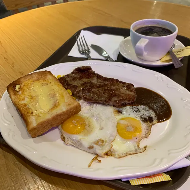 今日遊船河,相約尖沙咀碼頭上船。特登早啲嚟食個早餐 ... 行吓行吓就見到呢間餐廳,一於就試吓先個餐牌都幾多選擇,最後揀咗薄切牛扒餐,包熱飲$42蚊。個牛扒煎得啱啱好,加埋脆邊煎旦同toast,對得住個價錢 下次如果路經此地,可以再試查看更多