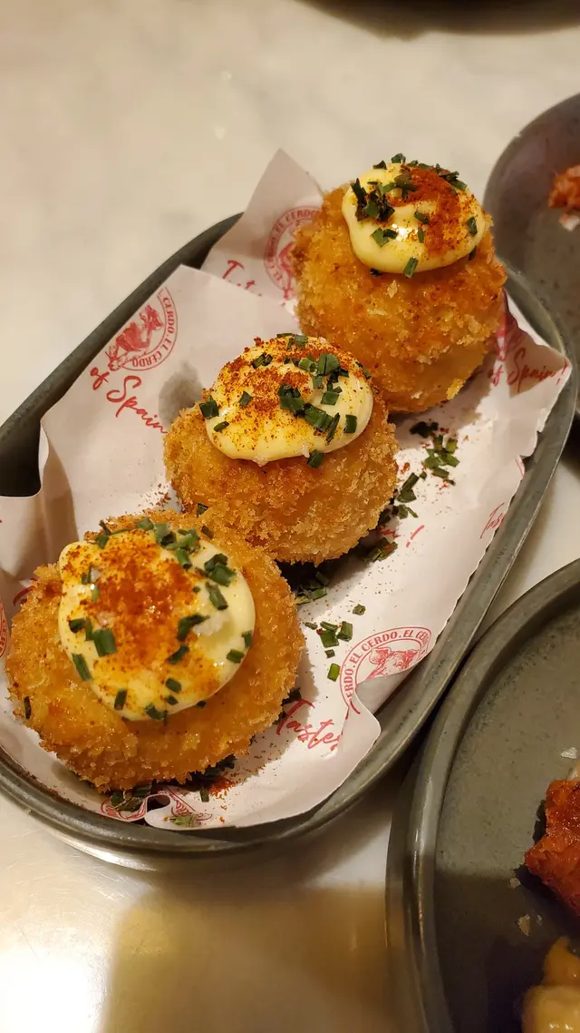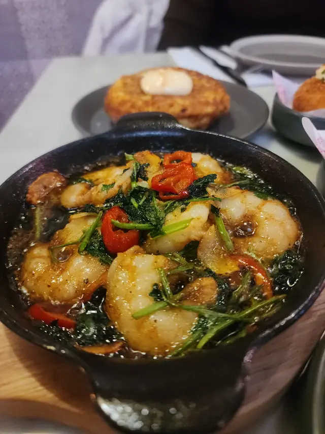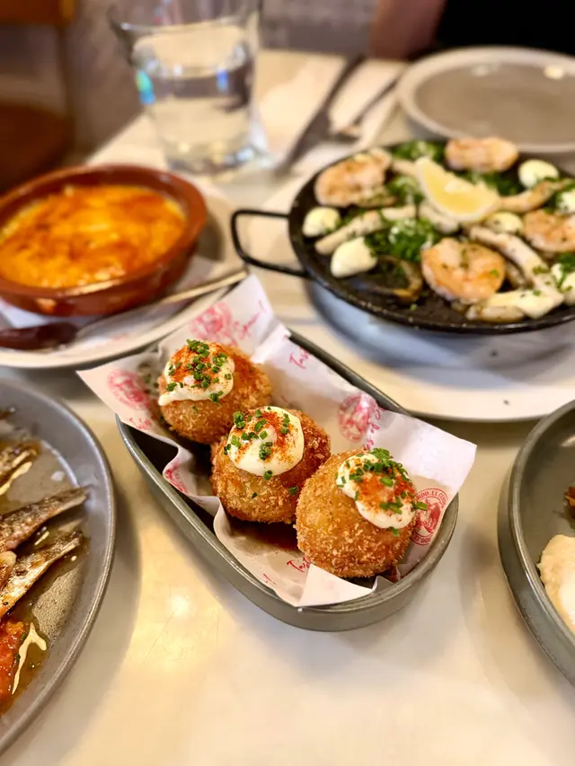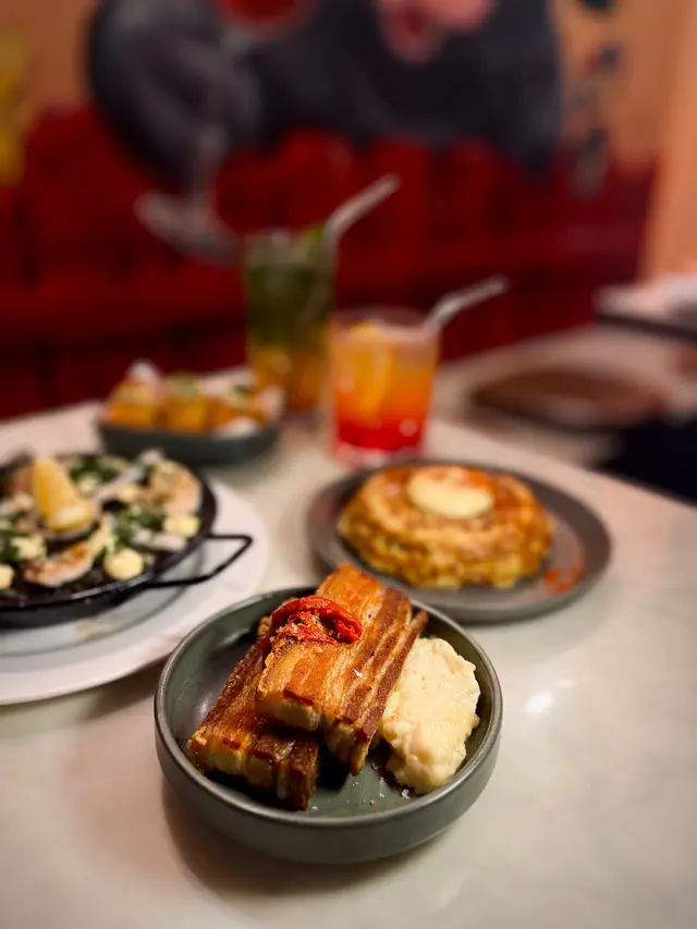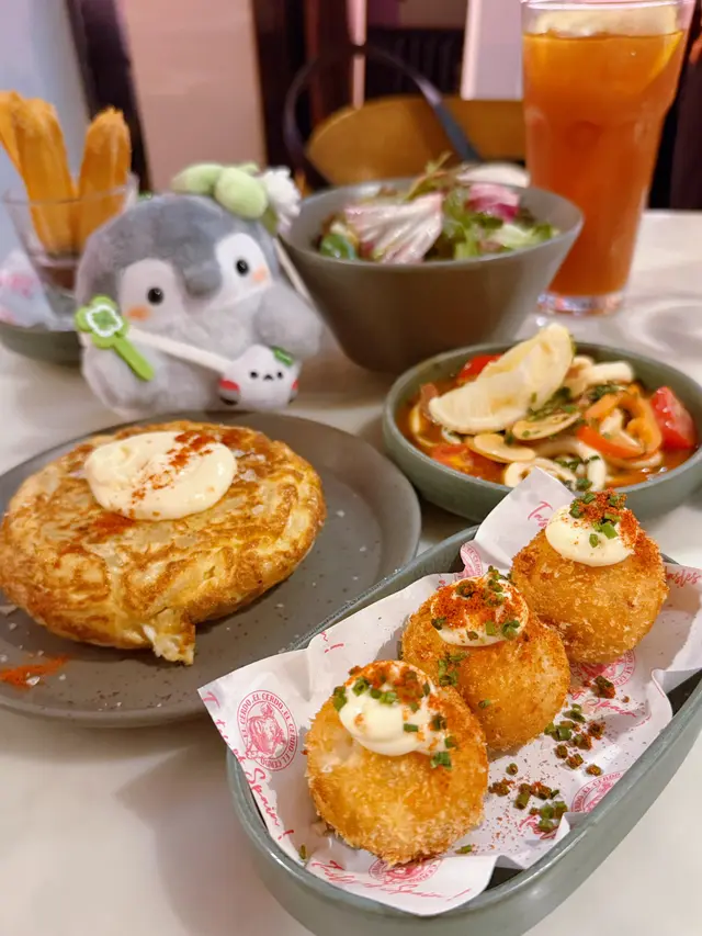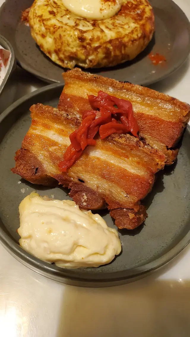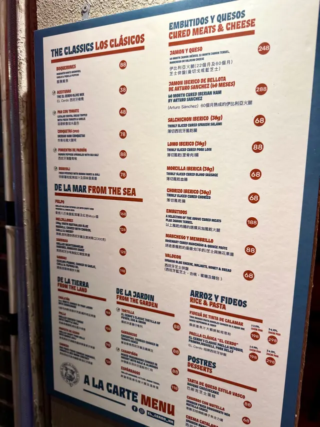 餐廳位置在中環soho 區,小店設計位置不算太多,有迷你室外座位。𖣔CHORIZO IBERICO由伊比利亞黑豬肉製成的辣味香腸,濃郁而且帶有微辣,是引起味蕾的前菜。是西班牙非常著名的。𖣔Pan con Tomala將麵包烤至金黃,擦上大蒜,再抹上以番茄泥、橄欖油和少許鹽調制的醬料,味道咸咸地有特色。𖣔SARDINES沙甸魚用橄欖油醃制後烤制或煙薰,加入檸檬汁味道鮮美,沙丁魚富含Omega-3脂肪酸,也是西班牙常見的海鮮。𖣔Panceta de Cerdo肉質肥美的豬五花肉是西班牙飲食中常用的肉品部分,經過醃制和煙薰處理後,品嘗前點上沙律醬,減少乾身感覺。𖣔El Cerdo Tortilla西班牙烘蛋,蛋餅通常蓬鬆軟嫩,內里以薯仔為主製作而成,薯仔較為creamy。𖣔FIDEUA DE TINTA DE CALAMAR用細麵條而非米飯,並加入了烏賊墨汁,口感特別,有點像吃西班牙炒飯,帶有海鮮的鮮甜。𖣔這裡有多款Cocktail或啤酒選擇,Amor 加入湯力水士多啤梨,檸檬及橙味的Amor,味道清甜,容易入口。…查看更多