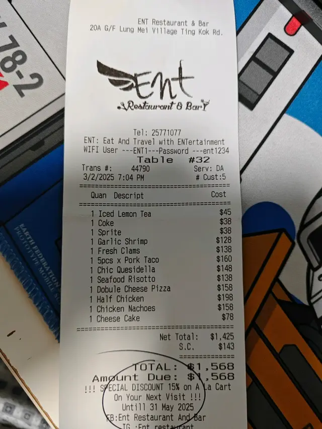 Ent Restaurant and Bar (大埔) 网上订位享低至85折优惠并赚Rice Dollars 网址: https://s.openrice.com/QrLS0LGi700 地址: 香港大埔大尾篤汀角路龍尾村20A號地舖 电话: +852 25771077