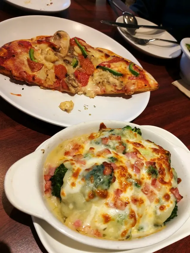 焗西蘭花、半份薄餅