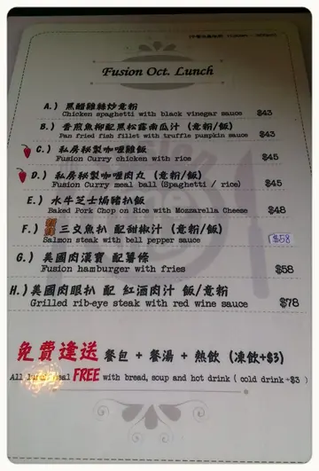 吃完也不知道。难道是香港人服务,半西餐的食品就叫fusion??