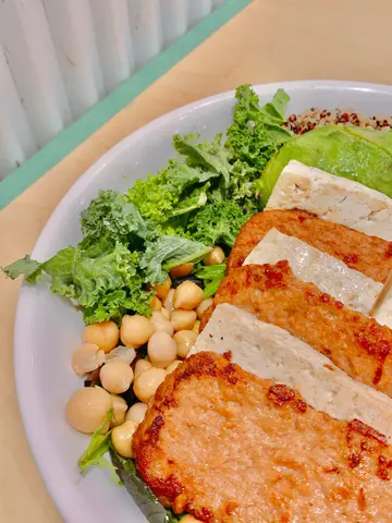 其实我好钟意食素㗎,适逢2025新一年到来,我又发掘咗一间素食餐厅「Green Common」食下D全新创意素食料理。*此餐厅收取加一服务费。新肌肉能量碗(单点$98),好足料,采用新餐肉、硬豆腐、羽衣甘蓝、红毛生菜、藜麦、牛油果、鹰嘴豆、红腰豆、车厘茄、粟米、花生酱制作;略嫌新餐肉食落豆味偏重、味道上不太类似午餐肉;蔬果食落好新鲜;花生酱味道浓厚,意想不到同沙律口味上都几夹。葡汁新炸鱼柳烩藜麦蒟蒻米(单点$98),表面铺有炸蒟蒻米,食落脆卜卜;新炸鱼柳口感外脆内嫩,食落带有鱼肉鲜味及轻微的豆味;葡汁采用天然香料、黄姜粉、椰浆制作,食落椰香浓郁;烩藜麦蒟蒻米口感Q弹,容易挂汁,类似食紧Risotto,配料包括有意大利青瓜、甜椒、车厘茄。蒜香炒杂菜(单点$48),采用秋葵、杂菌、甜椒、西兰花、甘笋、椰菜制作,蘑菇、冬菇、草菇食落好Juicy,杂菜配以蒜蓉食用,食落好香口。新蟹饼2件(单点$24),即叫即炸,炸衣口感薄脆,新蟹肉食落口感一丝丝、带有一点真蟹肉鲜甜的味道,还原度高,配以泰式甜辣酱食用,味道更佳。流心香芋西多士(单点$46),表面铺有糖粉,西多士口感外酥脆内软熟,食落蛋香味浓,内有芋泥,口感绵密,味道清甜,香芋酱内有香芋蓉,食落甜而不腻。提拉米苏奶盖(单点$48),半糖,表面铺有可可粉,奶盖采用Whipper Cream制作,口感细滑,味道咸香,略嫌燕麦奶咖啡饮落Tiramisu味道欠奉,比较难以联想。香芋乌龙绵绵茶(单点$46),半糖,表面铺有脆片,乌龙茶茶味浓香,芋泥份量多。…查看更多
