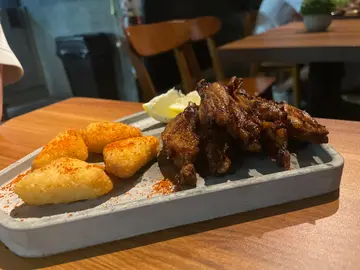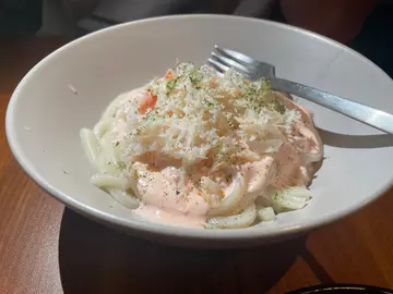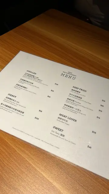 收工同朋友行吓街,经过呢间Bar好似好chill,而且入面都见到得返几张枱,应该唔差,所以决定入去睇吓系咪真系好食同埋入去饮番杯都好!入到去自己揾位,因为店舖得两个staff比较忙碌,但店员都好快手咁俾咗个Menu我哋睇住先,转头先再叫佢哋落单!咁我同朋友就各叫咗一杯嘢饮同埋一个主食,再加咗啲配菜咁!明太子忌廉蟹肉乌冬$108:老老实实,讲个明太子蟹肉乌冬系真系几好食,但个份量真系有点儿细,我自己一个食都觉得好唔够饱!明太子同个汁系好夹,唔会话食完好腻!反而有一种食极都唔系好够嘅感觉🥹牛肋条beef stew $118:呢个系朋友叫嘅,朋友就觉得牛肋条麻麻哋,虽然牛肉条条身煮得好腍,但系个酱汁同牛肋条唔系好夹,牛肋条亦都唔系好吸到酱汁嘅味道!而且份量真系好细,可能得几条完全唔够饱🥹鸡翼$78:新鲜即炸,炸得皮脆肉嫩,鸡翼就真系好好好好好食!推荐,作为送酒小菜一流!避风塘薯条$58:呢个都好好食,同样系新鲜即炸!Woowoo $88:酒味一啲都唔重,唔似饮紧Cocktail ,就连唔啱饮酒精嘅朋友都可以一试Banana Head 香蕉$108:我最爱😚😚😚好有奶味…查看更多