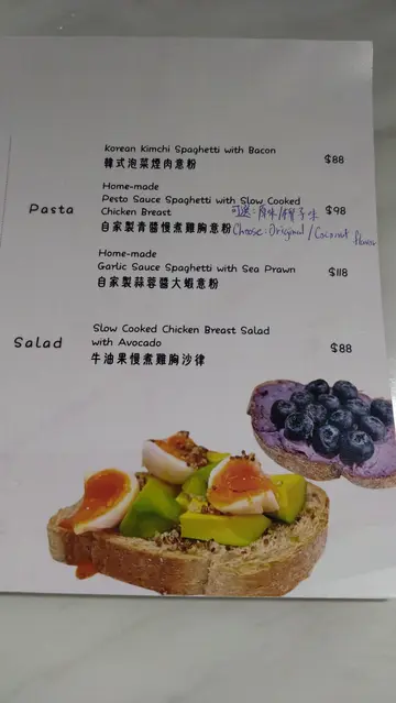 Hot latte $40入口温热甘香,甘味香醇!香滑顺喉!韩式泡菜烟肉意粉 $88酸辣而橙红色的泡菜汁好霸道,粉红色的烟肉也被隐藏了!