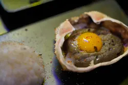最近成日徘徊于旺角同大角咀之间,觉得呢区好多餐厅小店都好有潜力🤔。今次想介绍喺正呢两个地点中间点嘅 @hungryb.hk 比大家,呢间串烧店食物掂,价格又合理,仲有boardgame比客人等串烧嘅时间打发时间🤩!走前再同老板倾两句仲话,如果预先同佢地讲定,系可以准备餐牌上冇嘅海鲜烧,如果下次再去一定会叫埋。烧原条蒜蓉茄子 🍆($38)想试串烧店嘅功力,多数我都用烧茄子去睇。准备需时长又要成条都烧得入味唔易,呢度嘅烧茄子成条都好均匀入味,边位唔会过生夹唔到,食完有冲动想再叫多条食🤤!蟹膏甲罗烧 🦀🍚($68)蟹膏够浓味同偏竭,唔会一夹就散,同蛋黄🥚混埋后,捞埋珍珠饭中和浓味冇得输😋!烧原粒帆立贝 ($32)贝类烧完成品都会缩水,但呢度缩完仍然好大粒🤩。可想而个原本有几足称。食落仍然有保持到鲜味,唔会被调味料覆盖晒。烧原只大啡菇🍄 ($23)水份鲜味十足又大大只,推荐一定要嗌呢个。当日其实仲有好多唔同种类嘅烧物,例如烧牛舌,鸡翼,蒜蓉娃娃菜等等。我写咗啲印象最深刻嘅出嚟,其他食物等大家去发堀啦。