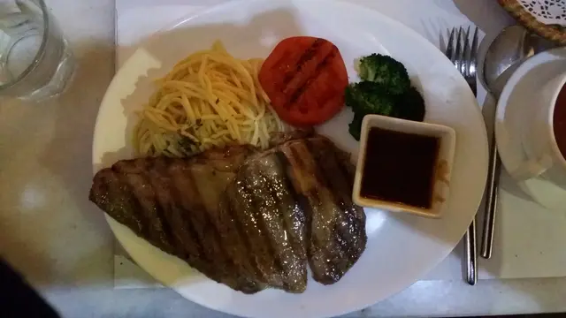 起初是看到openrice的食評有這麽多,所以才入來試試。一到來,環境不錯,雖然店舖比較細小,但裝修不錯。這裡的價錢也非常大眾化,絕不會太貴。首先來的是這個沙律,光看賣相已經不錯,味道也很好。而且,廚師亦非常細心地把橄欖油和黑醋用一個器皿放左碟上,好讓客人可以自由選擇在吃沙律時要不要橄欖油和醋。上菜的速度亦頗快。因為我們還未吃完之際,之後的,亦不停端上。但桌子是完全容不下這麽多的東西。接著就是上了雜菜湯,平平無奇。我和友人心想這個晚餐的開頭這麽好,之後的主菜亦會相當不錯。上主菜的時間,光看賣相是不錯。但我們明明是點了5成熟,卻來了7成。這樣亦不打緊。重點是整碟都是冷的,而且牛扒的肉是堅韌無比,很難很難才切得到小許。結果我們都吃不下,而且雙手非常疲倦。最後,跟餐亦有一杯飲品和甜品。我們只是點了凍檸檬茶,沒有茶味,而蛋糕也有點怪味。我想下次也不會再來了。…查看更多