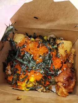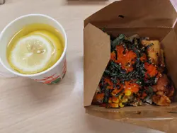 今日中午經過見到仲有早鳥優惠便決定一試蟹子炸雞飯 + 飲品 $52算是幾平雖然睇落外賣盒好細其實飯都幾多下仲有好多配料Eg 栗米,青豆,紅蘿蔔粒,蘿蔔粒感覺幾健康仲有滿滿蟹子鋪上面食每啖飯都幾有口感重點來了 炸雞就好一般雖然吾太油淋淋但偏乾 同愈食愈喊😣如果多番啲汁會好啲查看更多