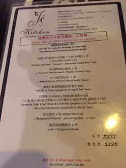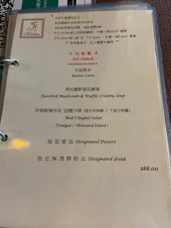 Had dinner with my wife twice at J’s Kitchen last month. Impressed with the service, decor, music, mushroom soup, smoked salmon salad, appetisers and dessert. The set dinner, which cost less than $300 for two, was definitely good value for money. To cater for patrons’ preferences, the chef may consider adding variety to the choice of pasta on the set menu. 查看更多