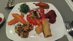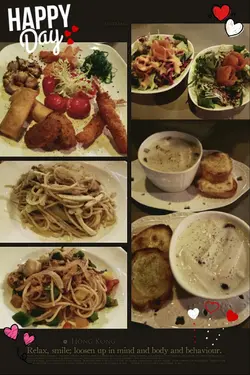 今晚再戰團購二人餐原來附近都有多間食店,酒吧、日式菜、越南菜...是次二人餐:1.挪威煙三文魚沙律(黑醋或千島醬) ~份量足,不錯2.蒜蓉包+黑松露蘑菇忌廉湯 ~勁脆蒜包包配合黑松露野菌忌廉湯正3.西日併盤(包括:中華沙律;煎蟹棒肉; 和風翡翠螺;即炸吉列蝦;炸蠔;炸春卷)~職員細心給予醬料可惜炸蠔炸得過燶,整個小併盤不錯4. 輕煎日本帶子配香蒜裙邊炒意大利粉 ~意粉份量足夠,帶子較為雖細,整碟炒炒得太乾身! - 意式香草什菌炒意大利粉 ~意粉份量足夠,雜菌菇加香草,吾乾身,食慾大增!5.焗心型芝士蛋糕 ~外型吸引,熱食芝士蛋糕味道正常,嘆著凍飲或熱即磨咖啡good~今晚餐廳環境寧靜,細心職員主動添水和快速收納餐碟,地鐵站出口步行5分鐘便達到。希望餐廳繼續能保持水準!加油值得美味2人餐好飽丫~查看更多