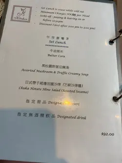 好少要食食下餐廳要打開個app寫食評,因為實在係味道同價格太不成正比。我路過鰂魚涌同男朋友食餐lunch,想搵間坐得舒服既餐廳享受午餐時刻,12點鐘倒路過此餐廳,本來餐廳外menu好奇怪,好似好多餐點都無價錢,不過男朋友想一齊試,所以就入左餐廳。店員幾友善既,帶我地入座。至於餐牌同另一位食評家一樣講法,A-F午餐餐牌,AB都係沙律作主菜,C-F餐都無咩好食,但抱著嘗試既心情,我地叫左一平一貴,一個日式汁豬頸肉飯同埋一個和牛漢堡扒配飯。前菜都還可以,蘑菇湯好多雜菇以及有松露香(食得出係松露油雜菇醬加左落忌廉湯),係唔錯既,亦係唯一一道菜我覺得正常。至於沙律係雜菜沙律,唯一不足之處係落吞拿魚肉(罐頭哥隻),同埋無任何沙律汁,我覺得完全好似食緊貓貓狗狗食糧咁無味。主菜方面就真係極度失望,可一不可再。日式汁豬頸肉飯($96,唔記得影個樣,但係性價比極低)日式豬頸肉非常遜色,以我口頭試既味道就係,廚師先將豬頸肉先白灼,然後將類似普通李錦記燒汁之類既汁倒落去炒一炒豬頸肉同雜菇,再配一碗日本米飯,仲要唔熱,係咁多。味道同賣相完全係只值普通$40午餐水準。和牛漢堡扒配飯($148)最嬲就係哩道主菜,和牛漢堡排我非常懷疑係低品質和牛肉,因為好難壓成扒之後煎到無曬肉質乾曾曾,仲要無額外汁提供,一直好似食緊擦膠,我甚至去到後來係太乾咬唔爛吐番出黎。至於放和牛扒對上既洋蔥同碎雞髀菇,雞髀菇無咩特別但唔夠調味,但係洋蔥仲係生既同埋切絲唔夠透切,界開左一條條但仲係連住做一大舊洋蔥。至於同碟既餃子味道就正常,煎得幾脆,睇下幾牛油粟米都正常。唯獨就係和牛漢堡排最失望。由於主菜太差,對甜品完全無期望。結果甜品一望我以為係雪糕糯米糍,結果係超級普通裡面係士多啤梨醬棉花糖。飲料,無特別。完全唔會再中伏入去食,亦都明白番點解間間餐廳排長龍,哩間一半滿都無。查看更多